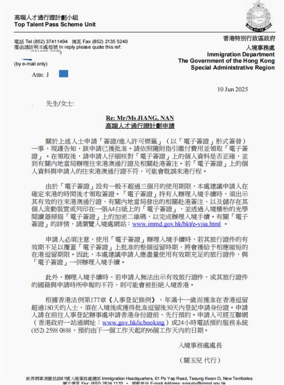 恭喜J先生全家获批香港高才B类,百强名校本科+3年工作经验