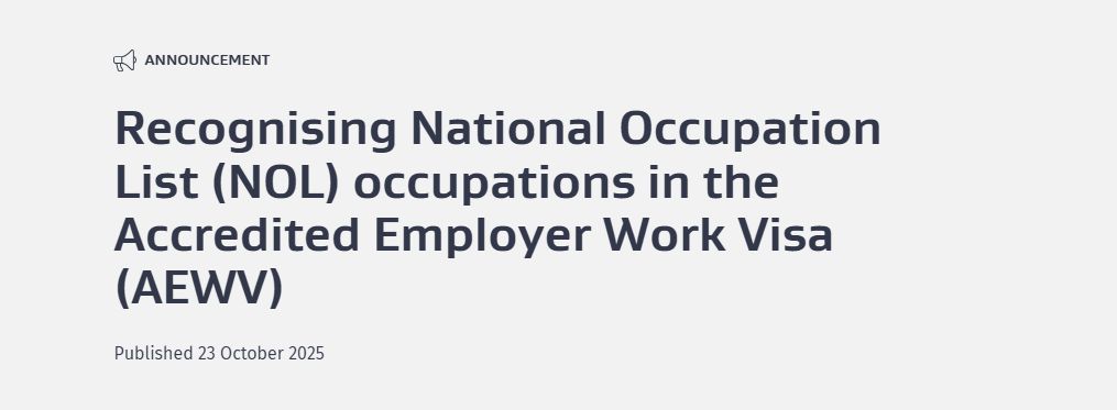 新西兰工签再传利好消息,移民局本月23日正式宣布,自2025年11月3日起,“认证雇主工作签证”(AEWV)体系将新增91个职业,涵盖农业、技术、健身等多领域